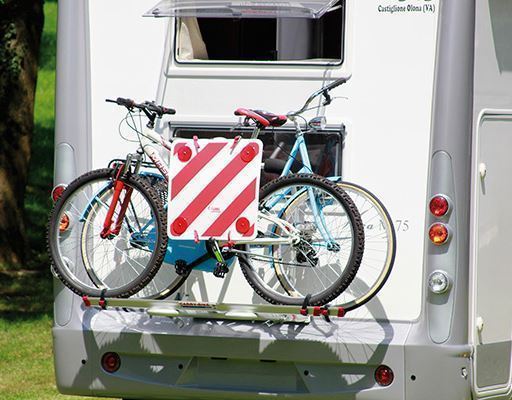 Advarselsskilt til cykelholder på campingvogn, bil eller autocamper.