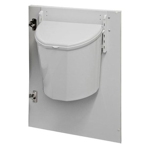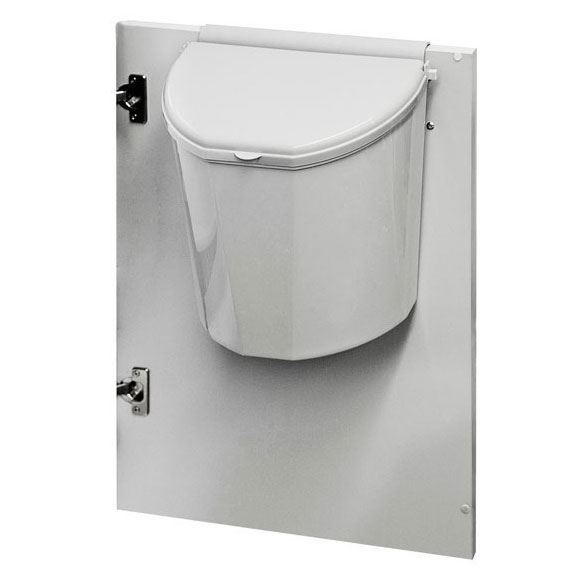 Affaldsspanden kan monteres med en monteringsplade til at skrue på en dør eller væg, en monteringsplade til skabsdøren og en skinne, der kan monteres på affaldsspanden, så den kan hænges over en kant f.eks. køkkenlågen.