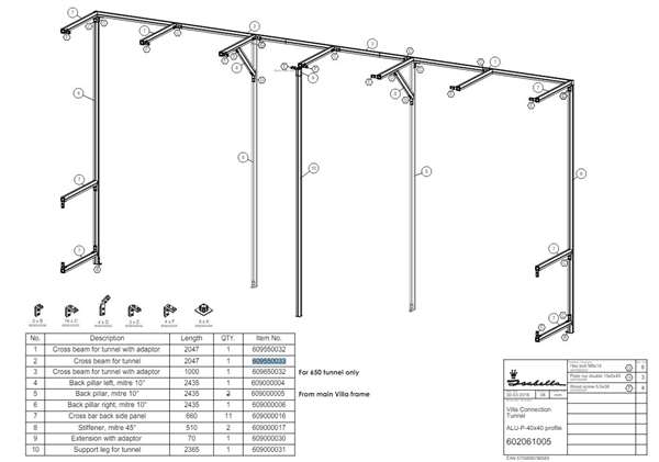 Isabella Villa Alu Tværoverligger Venstre side til Tunnel - længde 2047 mm