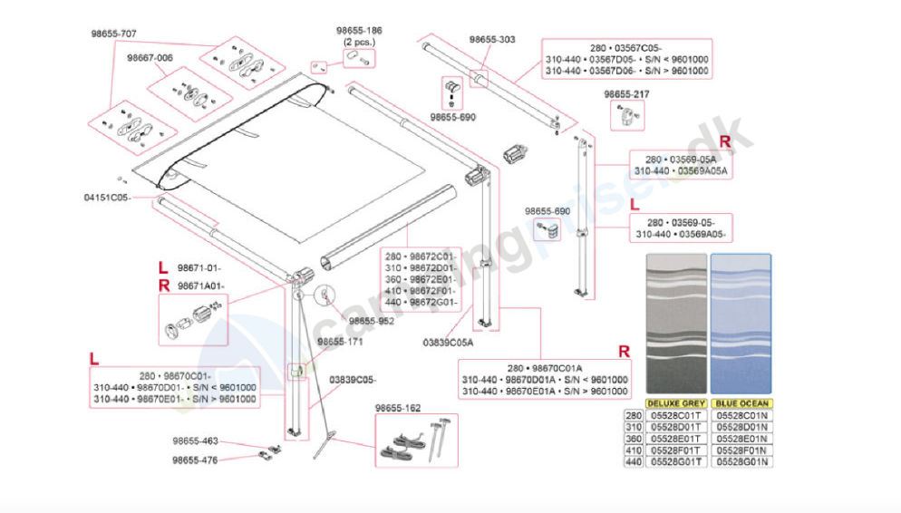 Passer til Fiamma Caravanstore samt Caravanstore ZIP posemarkise 310 - 360 - 410 - 440 cm. fra 2005 og fremefter.