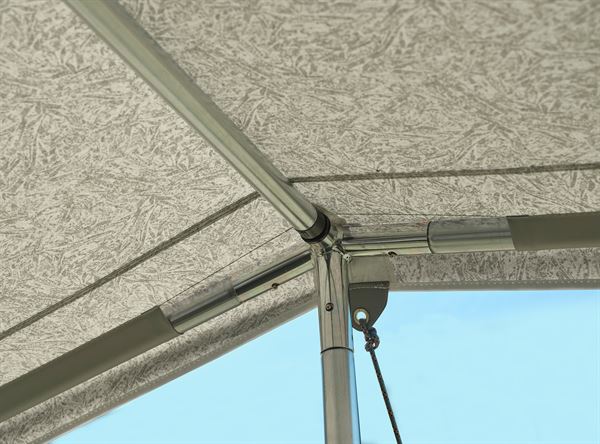 * Ekstra stænger i lommer under udhænget sikrer optimal opspænding.