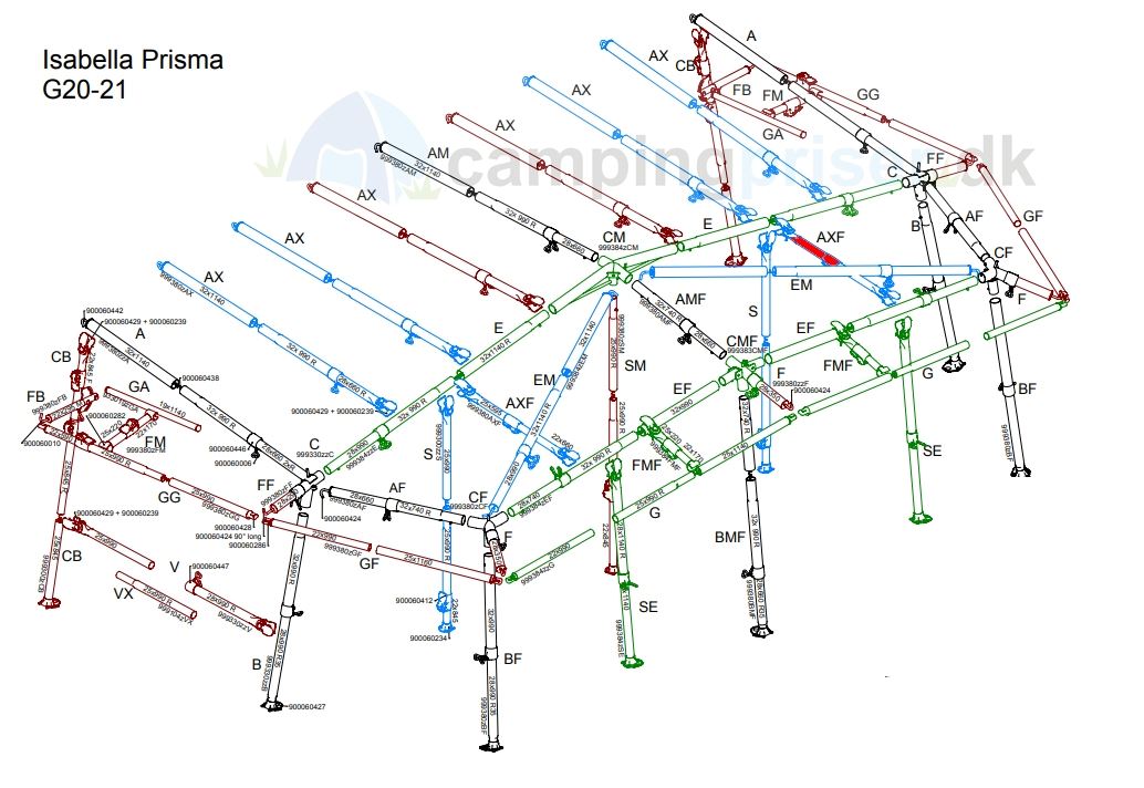 Isabella AXF-stang G20-21 til Isabella Prisma med klembeslag i begge ender i MegaFrame