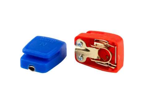 Rød er beregnet til den positive pol og blå til den negative pol.