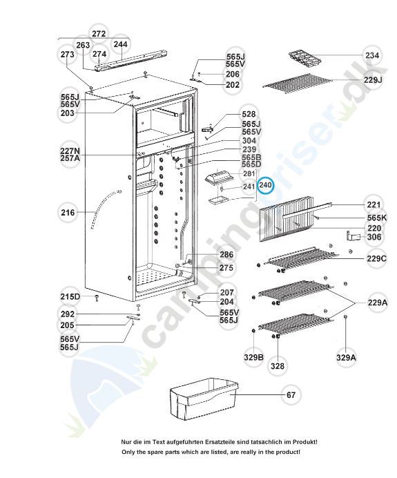 Komplet belysning til Dometic køleskab. (se pos. 240)