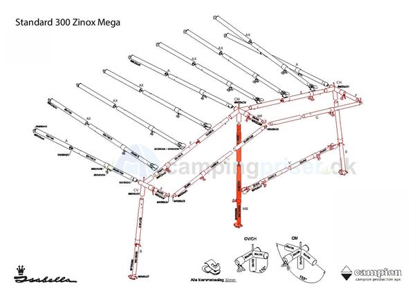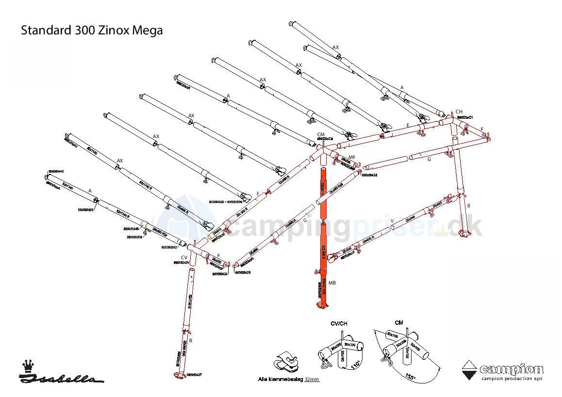 Midterste ben til standard fortelt i 300 cm dybde i Mega stel