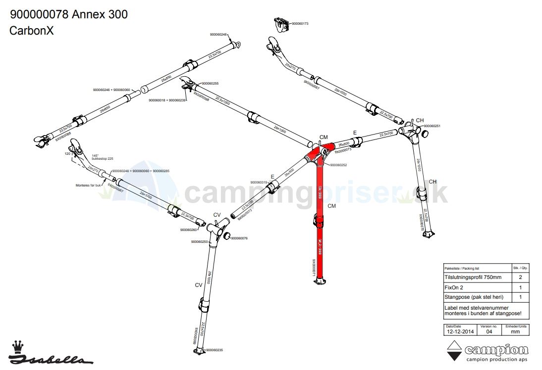 Isabella CM-stang ben i midten med IsaFix beslag til Isabella annex 300 i CarbonX