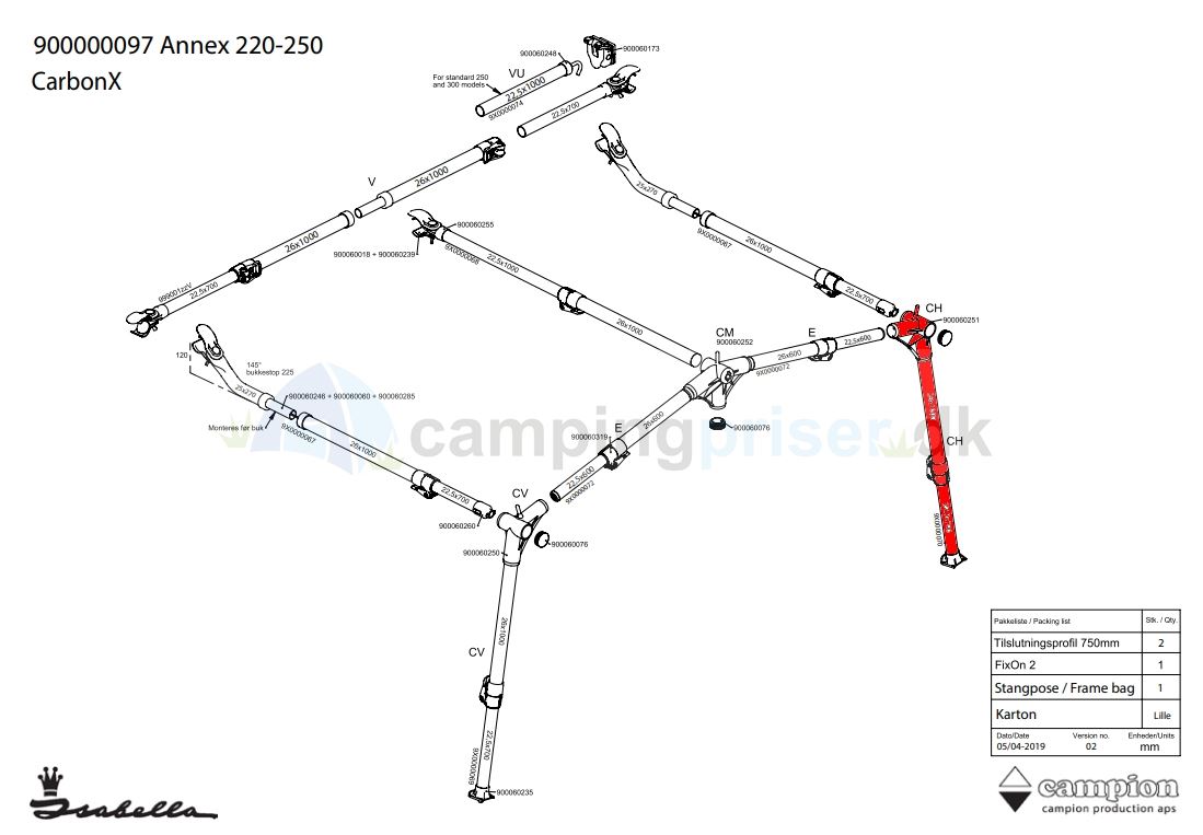 Isabella CH-stang ben til højre side til Isabella annex 220-250 i CarbonX