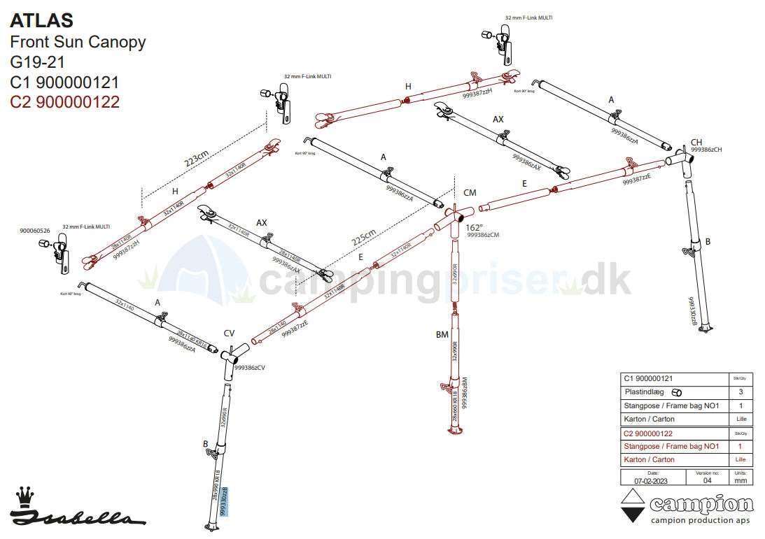 Isabella B-stang ben G19-21 til Isabella Penta og Isabella Prisma samt Atlas solsejl i MegaFrame