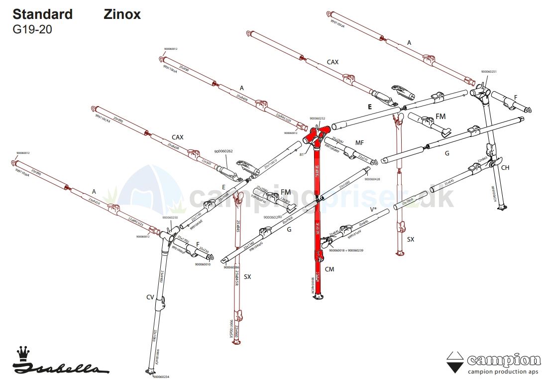 CM - stang -  Midt Ben - stang Isabella fortelt med dybde 250 - 300 cm med T-Rex - beslag i Zinox  - stål