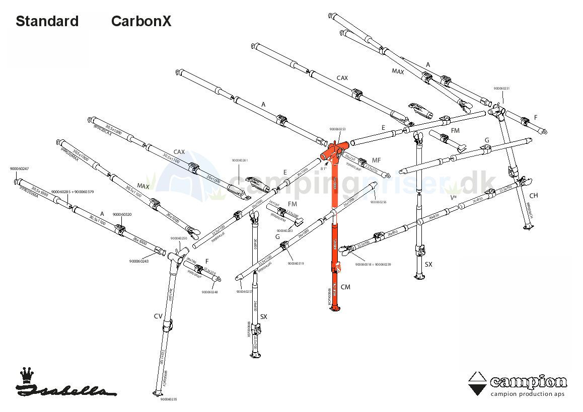 Midterben til alle Isabella 2,5 og 3,0 meter fortelte samt Adria Action G19-23