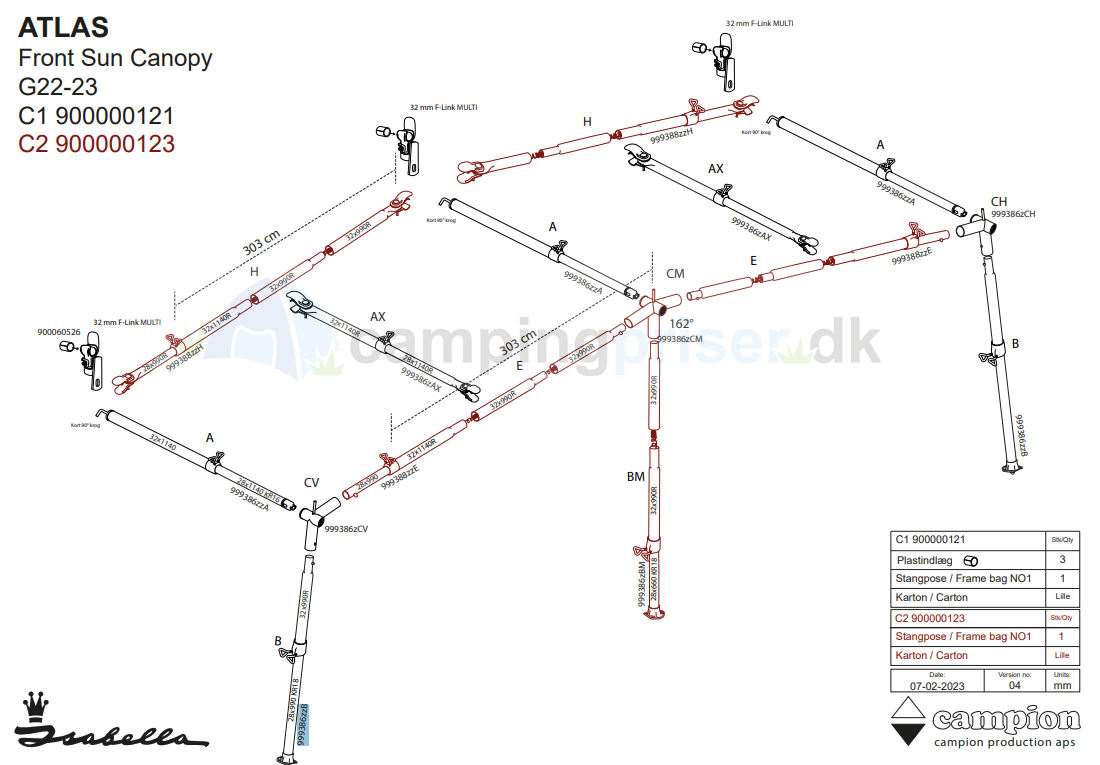 Isabella Mega B-stang (ben) til Atlas solsejl str. G22-23 passer både på højre og venstre side