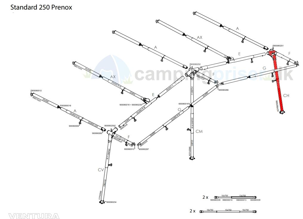 Højre ben til  Ventura fortelt med plast CH - hjørne i Prenox - stål