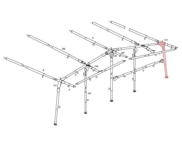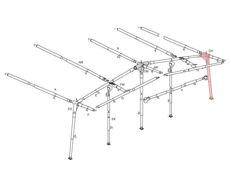 Isabella Hjørneben højre til alle Isabella 2,5 og 3,0 meter fortelteHjørneben set på tegning