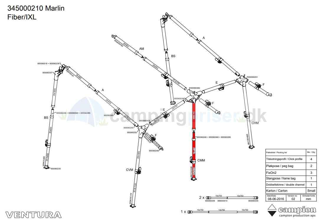 CMM-stang  forreste ben - Ventura Marlin deltelt i Fiber - IXL med Fixus beslag