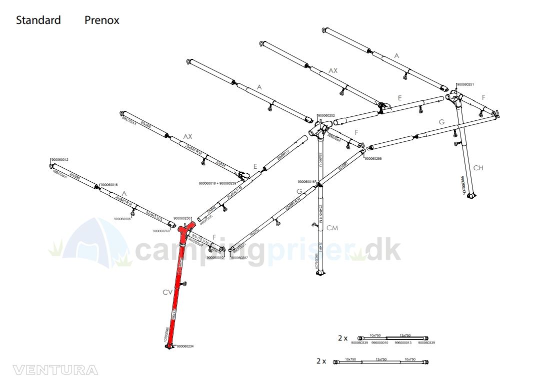 Ben i Venstre hjørne med fod og hjørnebeslag - Ventura fortelt -Isabella - Prenox
