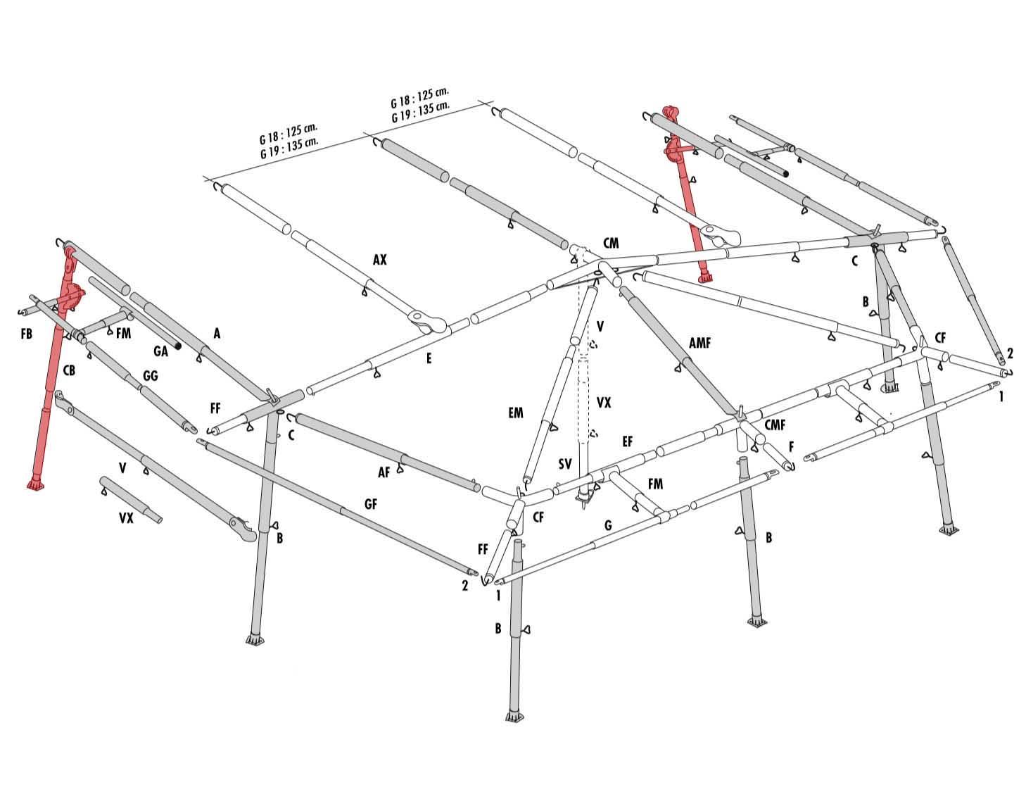Isabella CB-stang er det ben som bruges op mod campingvognen i hver side til Isabella Penta - Zinox