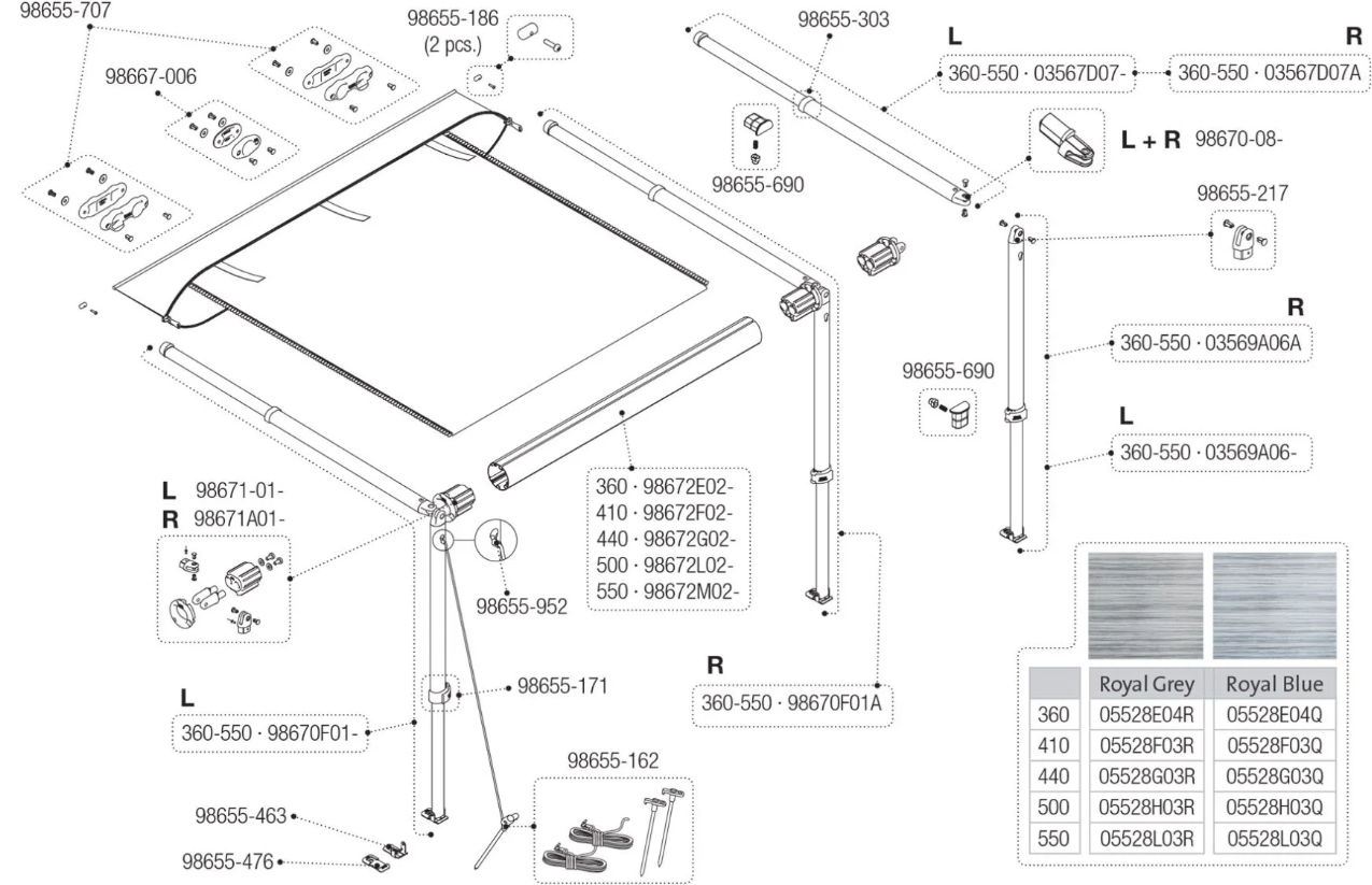 * Passer til Fiamma Caravanstore posemarkise ZIP XL 280 - 310 - 360 - 410 - 440 cm.