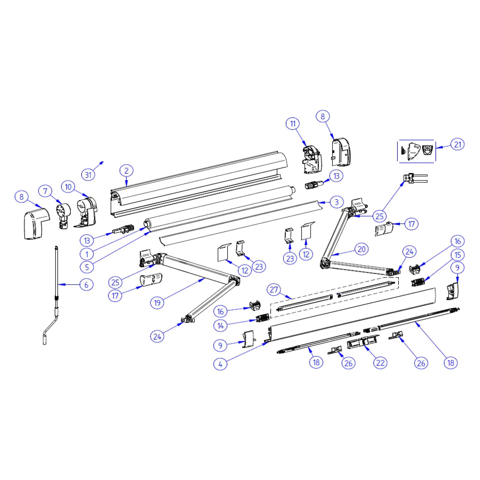 Forreste klemmeprofilbeslag til teleskopstang Thule Omnistor markise 5200 - Thule Residence