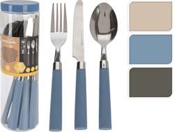 Bestiksæt bestående af 12 dele i rustfrit stål i beige, blå eller grå