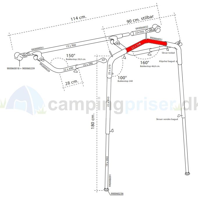 Isabella buet stang til Isabella Penta dørmarkise