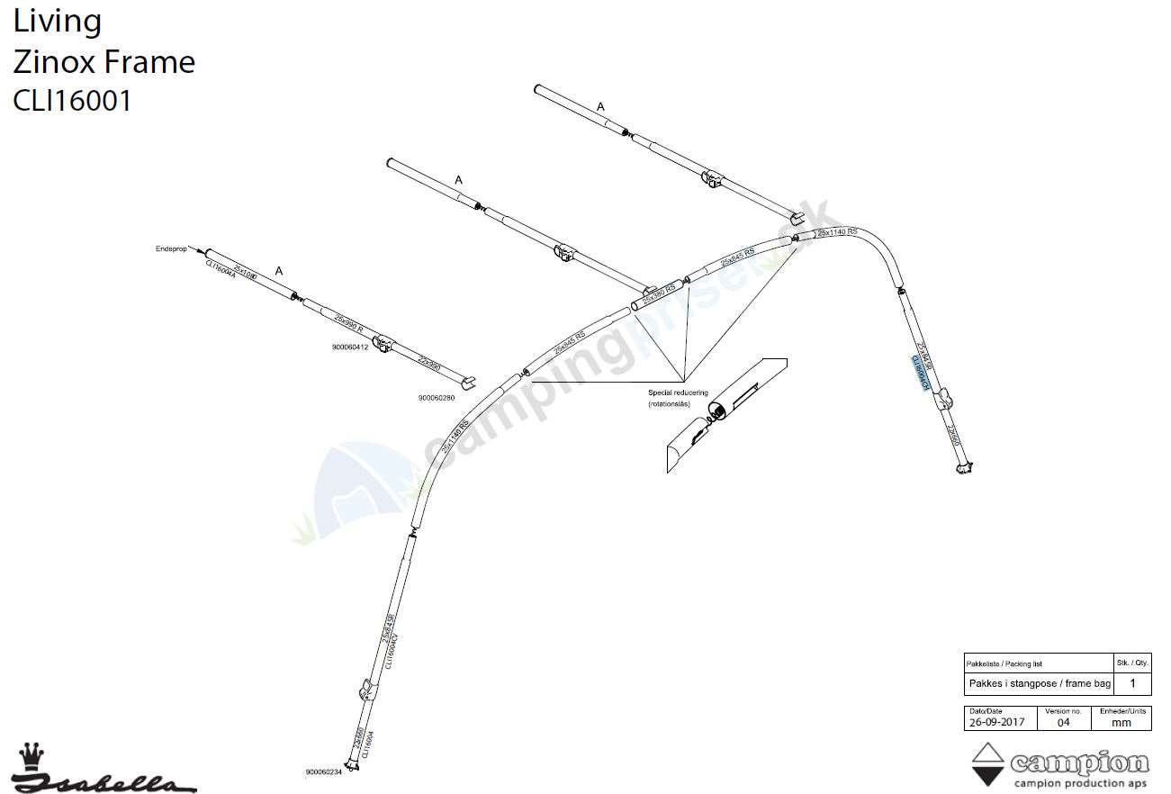 Camp-let Living Zinox CH-hjørne højre med B-stang (ben)