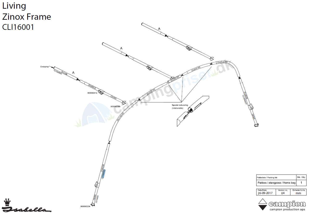 Camp-let Living Zinox CV-hjørne venstre med B-stang (ben)