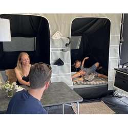 North telt 3 inkl. kuffertrum, gardinsæt, pløkpose, lommekappe , verandastang og mørke sovekabiner.