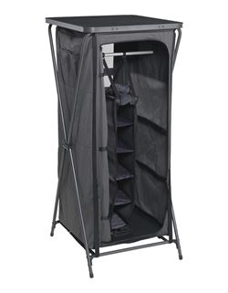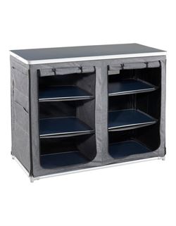For dem, der har brug for ekstra plads til at opbevare tøj, madvarer eller campingudstyr, har vi høje og brede campingskabe med flere rum og hylder. Disse skabe giver dig rigelig opbevaringsplads og gør det nemt at organisere dine ejendele, så du kan holde orden i campingområdet.