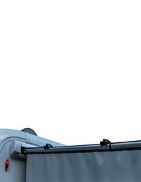 Beslag monteret på tagstangen og klemmer på tagdugen på markisen, så vinden ikke tager fat i dugen.
