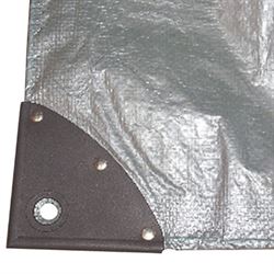 Nem at stramme med reb eller elastiksnore (medfølger ikke). Hjørnerne er forstærkede, og der er øjer for hver 40 cm.