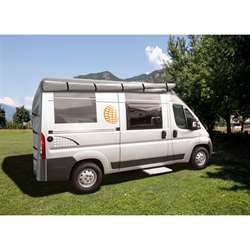 Overtrækket kan åbnes langs siden ved hjælp af to lynlåse, så der er nem adgang til autocamperens døre.