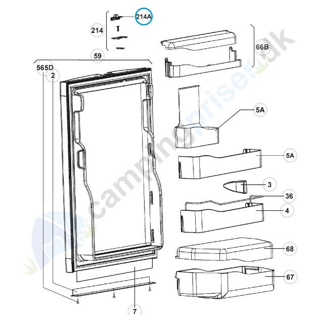 Dørlås til Dometic køleskab. (pos 214A)