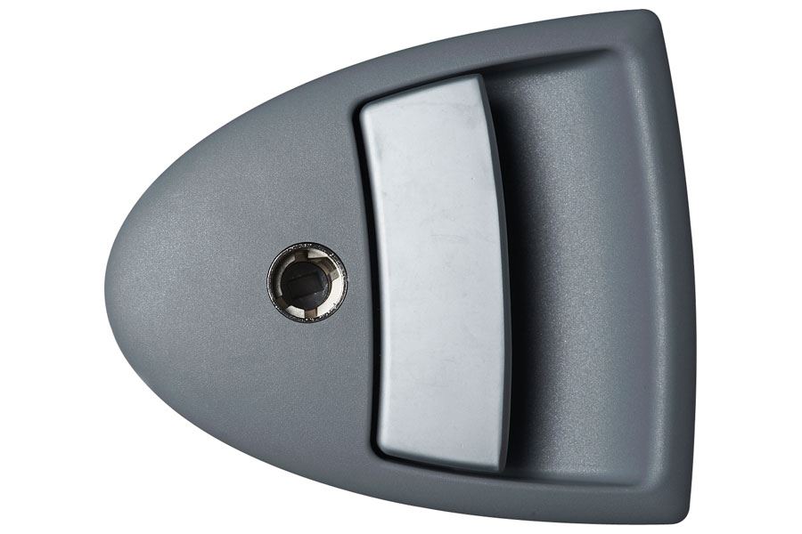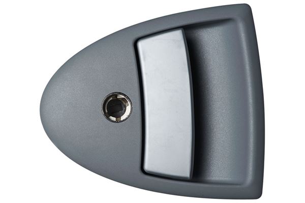* Udvendig håndtag grå og sølv.