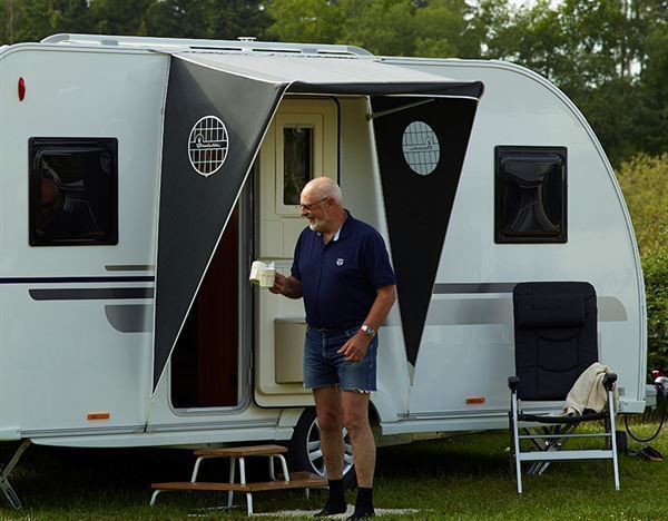 Dørmarkisen er en hurtig og stabil løsning til overdækning af Indgangsdøren i campingvognen.