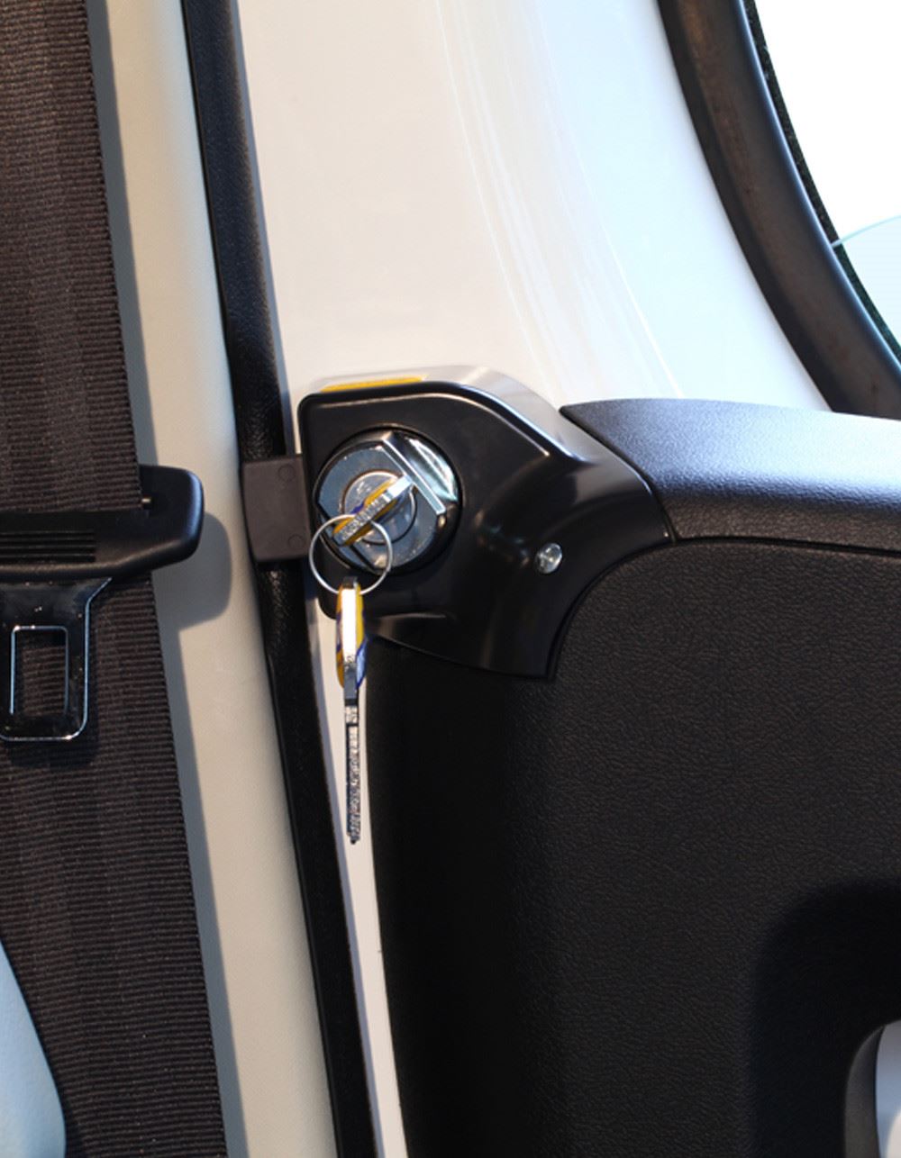 Leveres med låsesæt til fordøre (indvendig) og 2 stk. låse til side- og bagdør