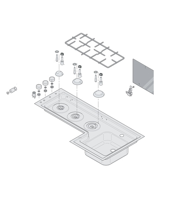 Komplet som set på tegningen + Glasafdækning til gasblus
