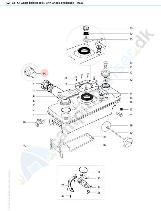 Se tegning 1 del 4A - Thetford C2 - C3 - C4 bundtank
