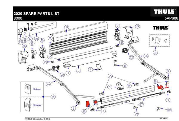 Endekapper frontskinne venstre og højre til Thule 8000 markise