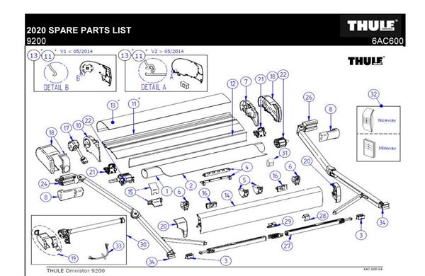 Endekappe markiseboks venstre og højre til Thule 9200 markise