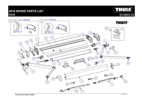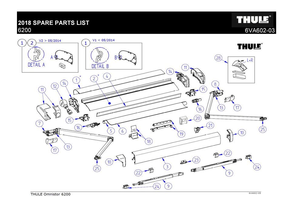 Endekappe H + V frontskinne Thule 6200 markise Hvid