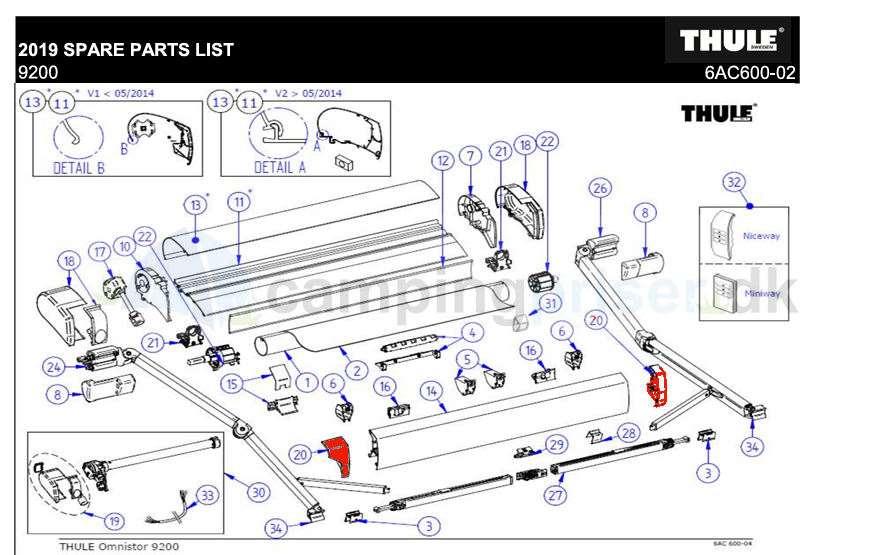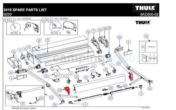 Thuile markise 9200 endekappe højre og venstre sæt, til front af markisen.