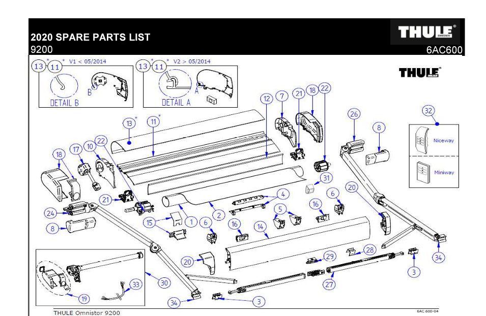 Du kan finde fremstillingsdatoen og typen af ​​markisen på mærkaten på indersiden af ​​kassetten.