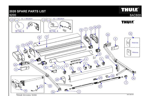 Indvendig endeplade til Højre side på Thule Omnistor 9200 markise