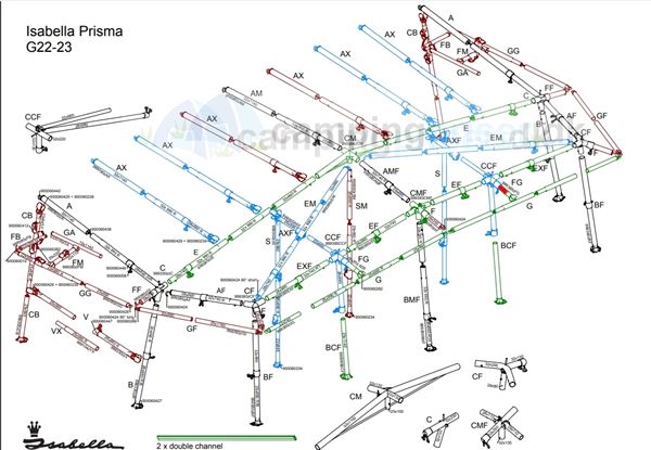 Isabella FG-stang kort udhængsstang G 22-23 til Isabella Prisma i MegaFrame med gaffelkobling