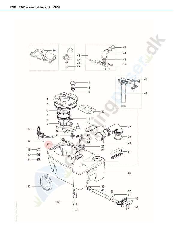 Thetford bundtank C250 - toilet C260Vejledning til udskiftning af flyder bundtank Thetford toilet C250 -  C260 side 1Vejledning til udskiftning af flyder bundtank Thetford toilet C250 -  C260 side 2