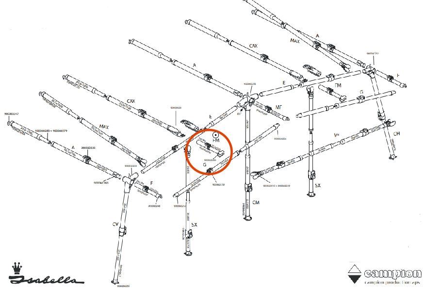 Den korte stang under udhænget på forteltet, bruges sammen med Isabella Connect  IS900060261