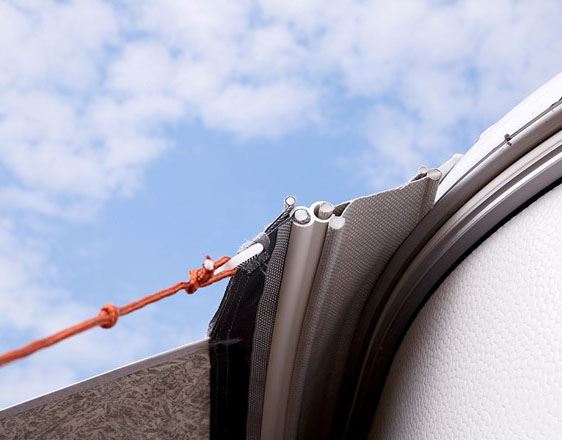 Drej den dobbelte vulst alt efter størrelsen på din vognskinne. Brug klik-profilerne fra det produkt, som du ønsker at tilkoble. Det gør det nemt at tage forteltet af og på.