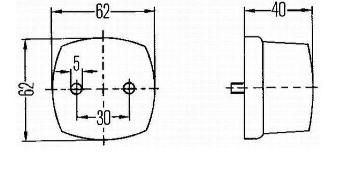 Frontlygte 62 x 62 mm flad glas Hella