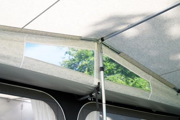 Solsejlet har en unik konstruktion i form af et top bagpanel, der sikrer en god højde på solsejlet, selvom det monteres på Penta forteltet under udhænget. For at skabe et godt lysindfald under solsejlet, er bagpanelet forsynet med to topvinduer.