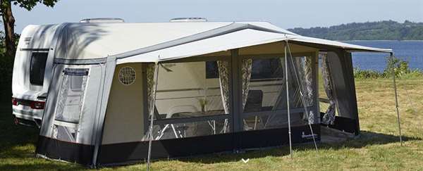 Eclipse monteres i udhænget på dit fortelt og dermed skabes en skyggefuld terrasse, hvor arealet under tag fordobles.